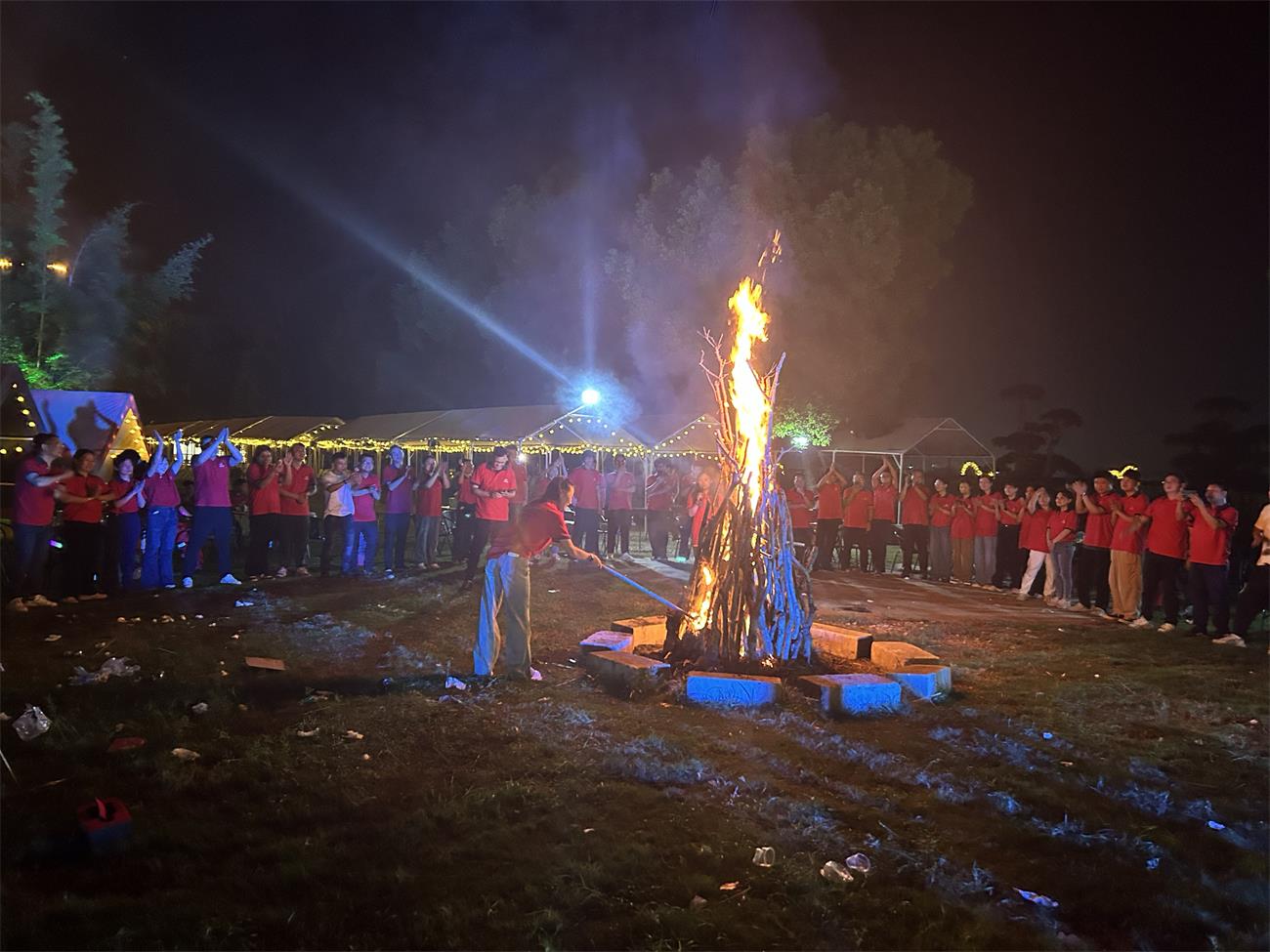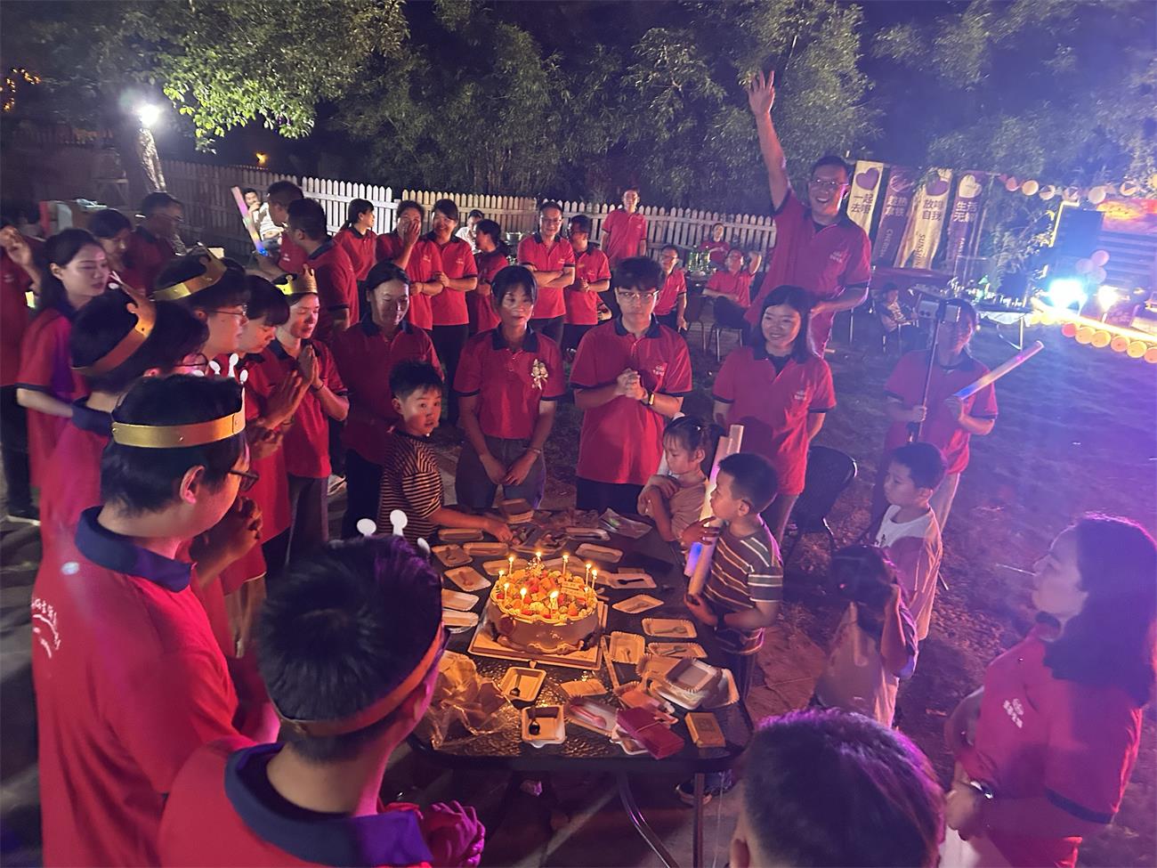 晚會(huì)開場前,周總登臺(tái)致辭。她深情回顧公司上半年的發(fā)展歷程,感慨前行之路的艱辛,向每一位辛勤耕耘、無私奉獻(xiàn)的員工表達(dá)誠摯謝意,同時(shí)送上滿含心意的中秋祝福。晚會(huì)現(xiàn)場精彩紛呈,悠揚(yáng)的歌聲,激動(dòng)人心的抽獎(jiǎng)環(huán)節(jié),趣味十足的互動(dòng)小游戲……此外,現(xiàn)場飄香的燒烤、醇厚的美酒,將味蕾體驗(yàn)拉滿。而點(diǎn)燃氛圍高潮的篝火晚會(huì),更是讓歡樂升級——員工們圍繞篝火載歌載舞,陣陣笑聲此起彼伏?;鸸庥痴罩δ?,大家還為9月過生日的員工集體送上祝福,共同分享甜蜜蛋糕,整個(gè)現(xiàn)場被溫情與歡樂緊緊包裹。