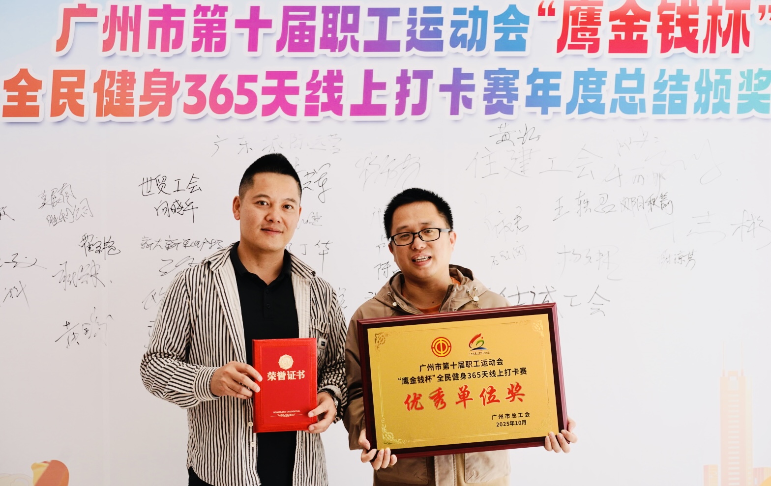 2025年10月,我司在廣州市第十屆職工運(yùn)動(dòng)會(huì)“鷹金錢杯”全民健身365天線上打卡賽中表現(xiàn)優(yōu)異,榮獲年度優(yōu)秀單位獎(jiǎng)。此次賽事由廣州市總工會(huì)主辦,通過線上打卡比賽活動(dòng),讓全民健身理念深入人心,促進(jìn)職工養(yǎng)成科學(xué)健身的習(xí)慣,旨在鼓勵(lì)職工積極參與體育鍛煉,提升全民健身意識(shí)。